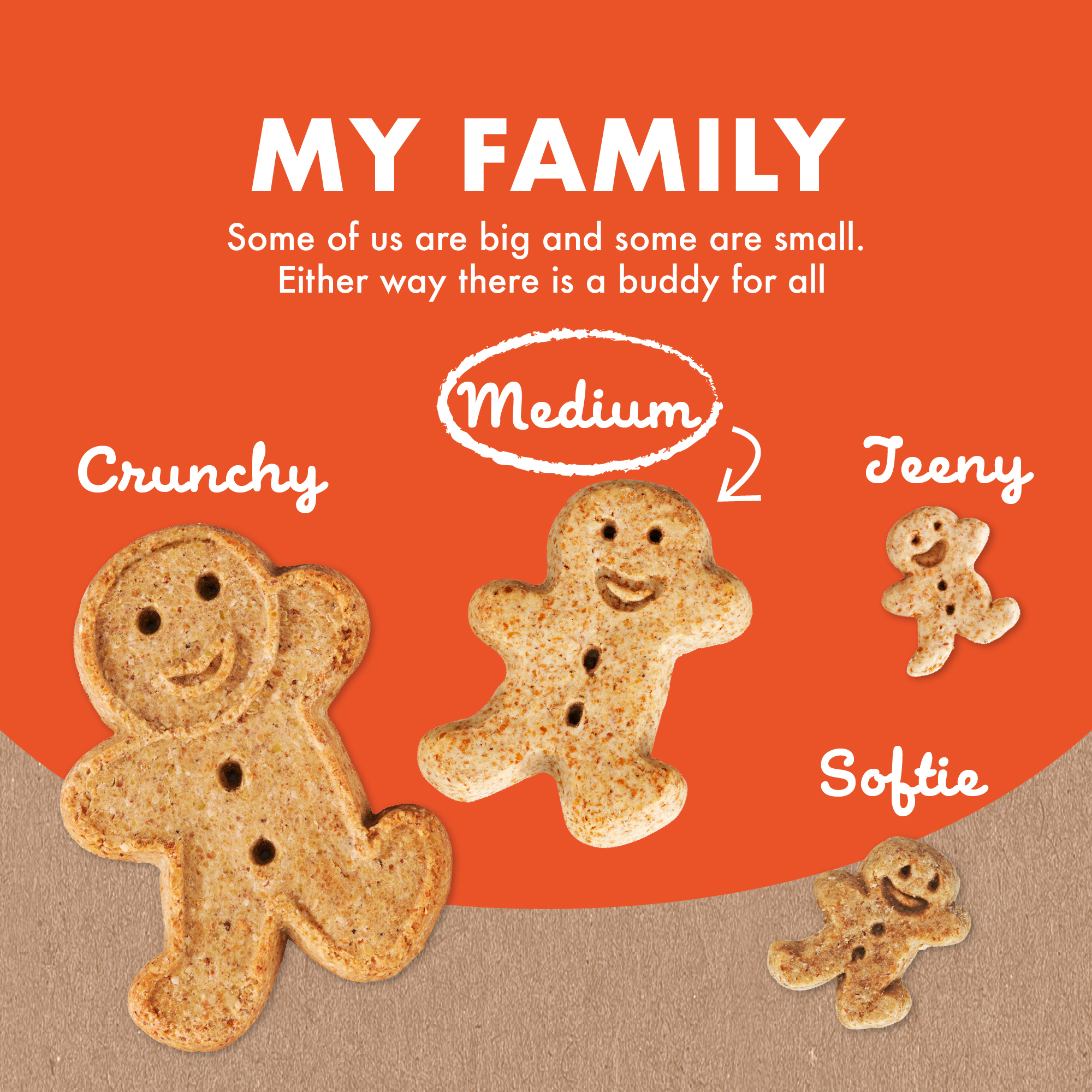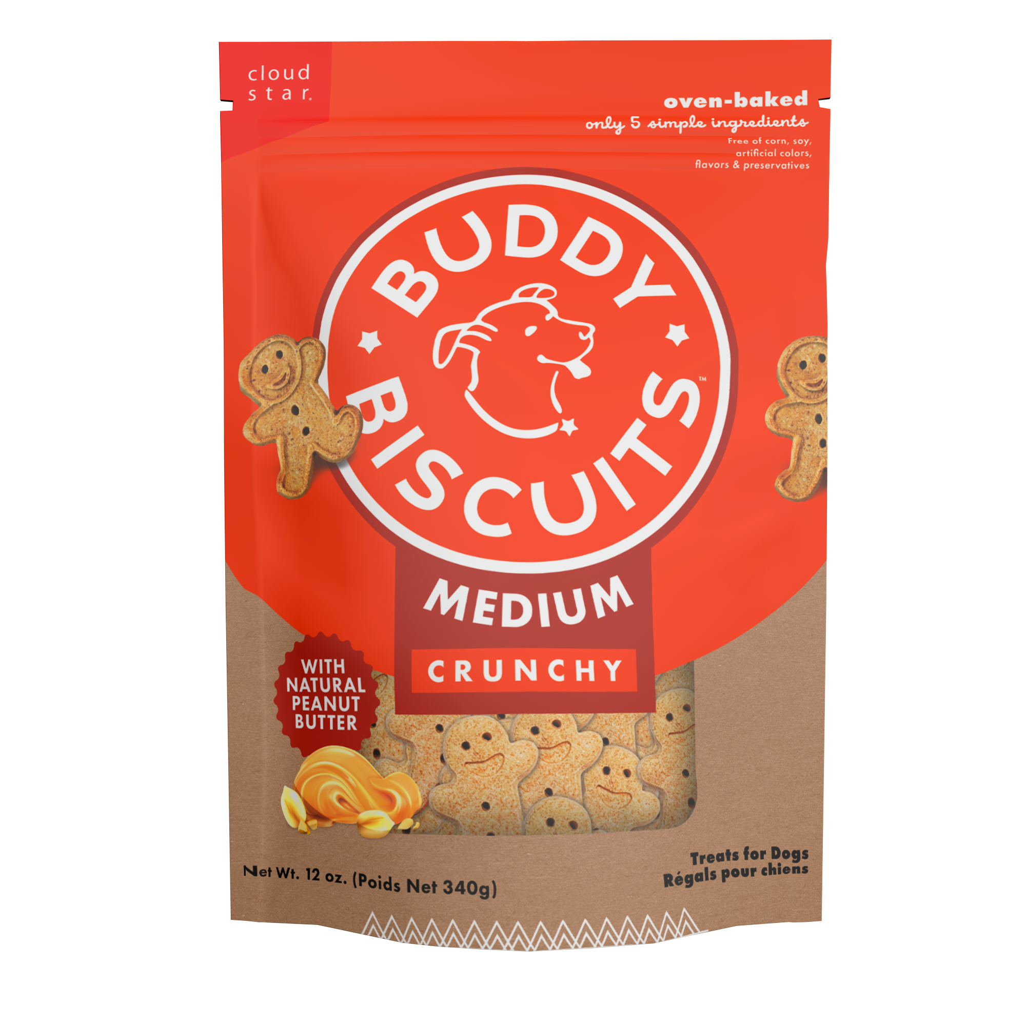 - Your favorite Buddy Crunchy Biscuit, now available in a MEDIUM size
